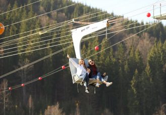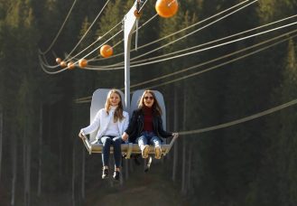 Сидячи в зручному кріслі, піднімаючись вгору, ви встигнете оглянутися навколо і вдосталь полюбуватися красивими пейзажами з висоти. Вниз ви спускатиметеся вже як на звичайному тролеї. 350 метрів польоту над озером Молодості (туди-назад – 700 метрів!) – це цікава незабутня пригода, яку необхідно додати до скарбнички своїх вражень!